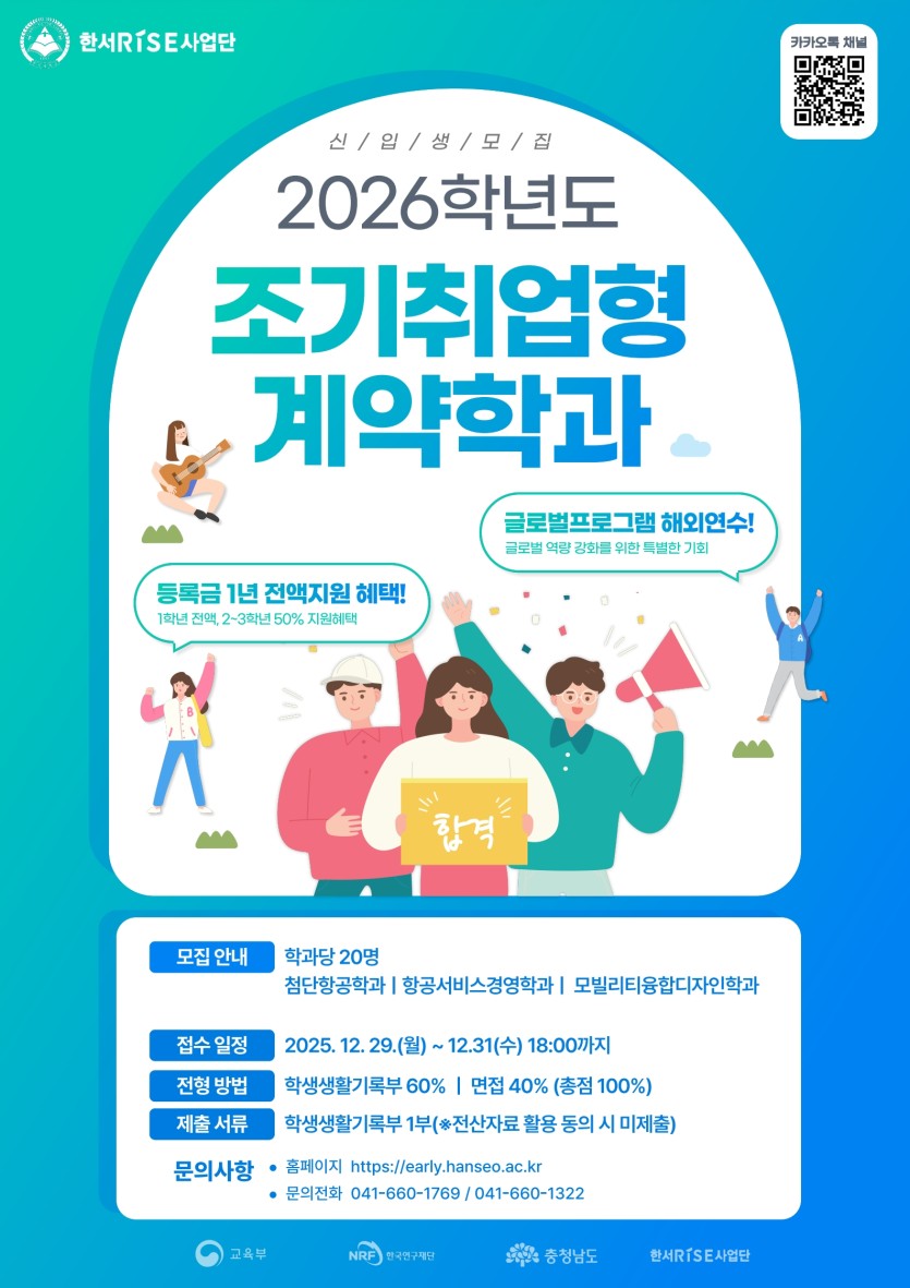 한서대학교 조기취업형 계약학과에 많은 관심 부탁드립니다!!